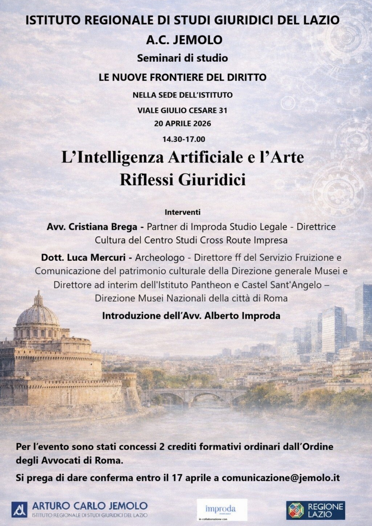 secondo incontro dedicato a “L’Intelligenza Artificiale e l’Arte. Riflessi giuridici- Nel ciclo dei seminari "Le Nuove Frontiere del Diritto"