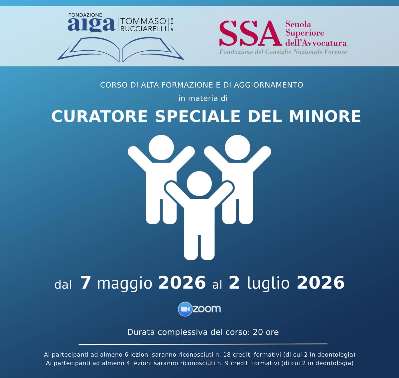 🖋️ Per iscriversi cliccare sul seguente link: https://www.fondazioneaiga.it/corsi/tutti-i-corsi/curatore-speciale-del-minore